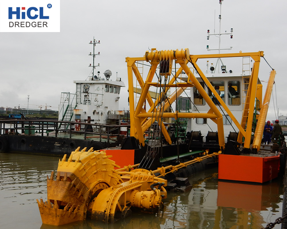 HWB series wheel bucket dredger is large scale full hydraulic control, dismantled and re-assembled wheel bucket dredger, which is suitable for inland waterway dredging, ditches and reservoir dredging operations. The whole dredger adopts hydraulic and centralized control system. The main body consists of three pontoons, when used, it is spliced into a whole. The cabin is dismantled, which can lose height when through the limit height place such as bridge. When the dredger reaches the water no connected area, it can be dismantled and transports on long vehicles or trains. It is equipped with self-propeller, anchor arm, spud devices & carrier, deck crane and so on. The bucket-wheel driving device adopt lubricating oil, and independent positioning metal floating ring seal.